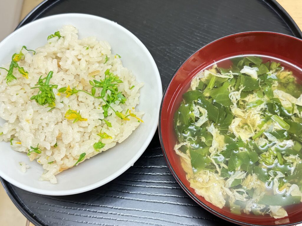 畑の菜の花は 菜の花ごはん 冬菜は味噌汁にして召し上がっていただきました