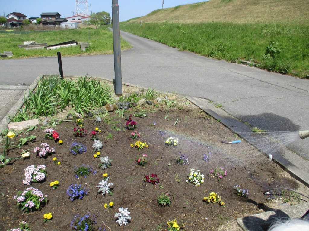 私たちが食事で栄養を摂っているように、花壇のお花たちにも栄養(お水)を💦