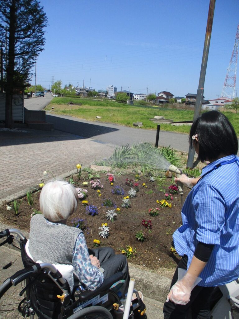 一緒に来てくださった入居者様も、「きれいだね。昔は私もお花を育てていたんだよ」と、優しい笑顔でお話ししてくださいました。